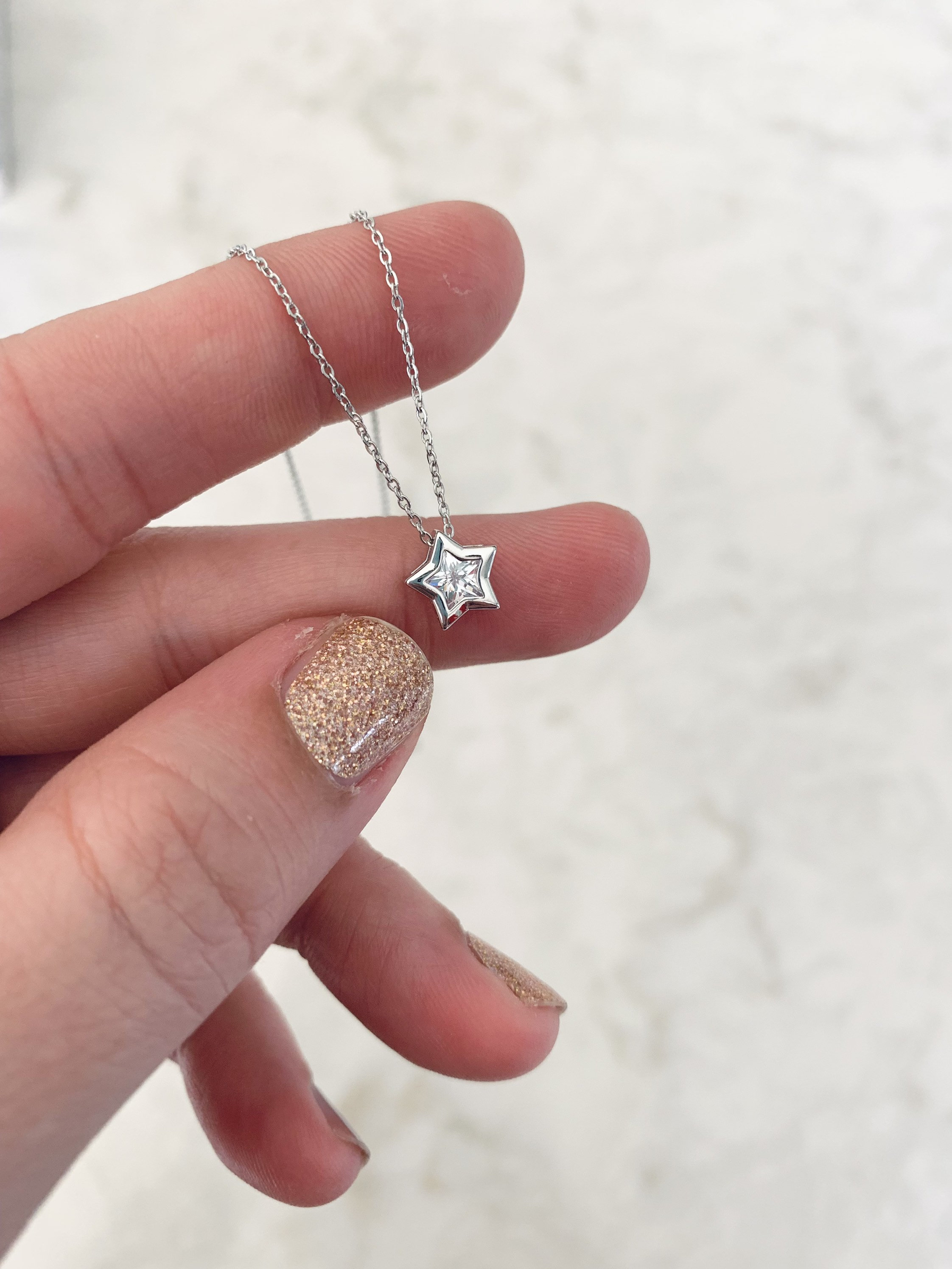 Silver Necklace. 17.5” chain. 16k silver plated over brass.